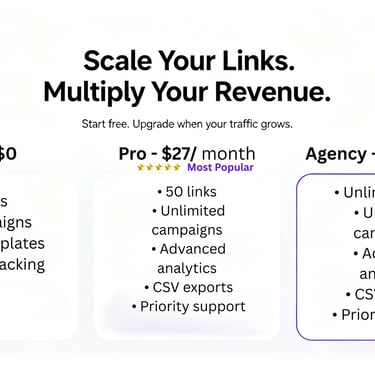 Start free. Upgrade only when your link income grows.